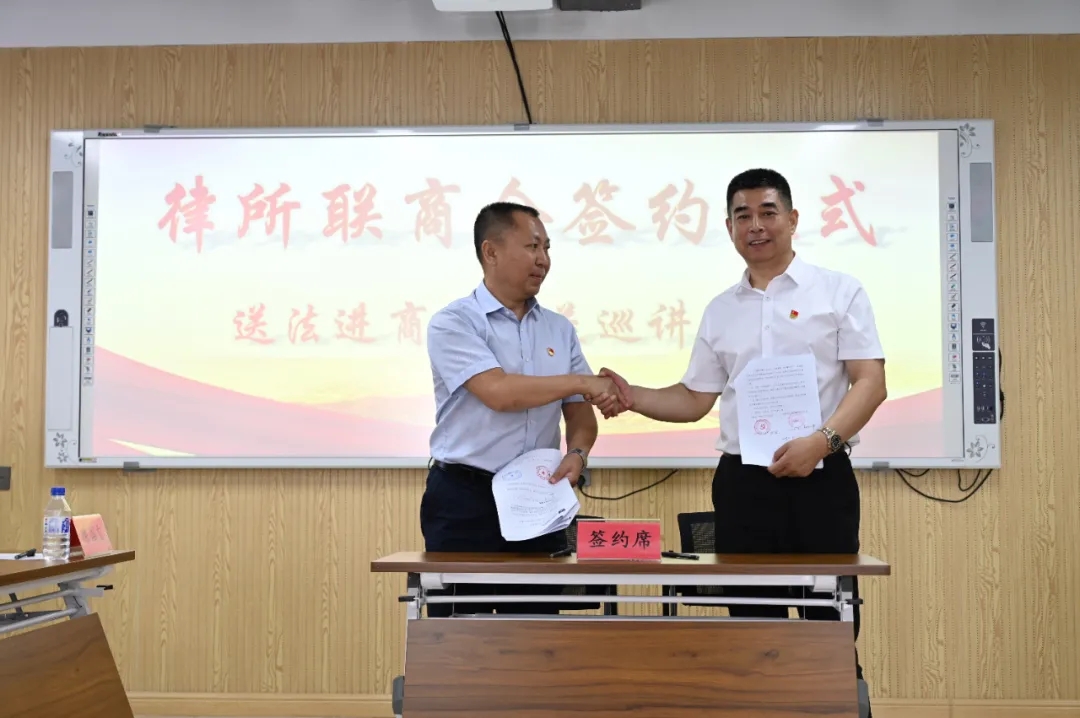 为全面贯彻落实国家和省工商联、省司法厅、省律师协会《关于建立“万所联万会”机制的意见》精神,持续开展为民营企业法律服务活动,9月3日,吉林吉大律师事务所党支部联合吉林省工商联汽车维修配件行业商会党支部、吉林省工商联科技装备业商会党支部联合开展“律所联商会”签约仪式暨送法进商会巡讲活动。吉林省工商联秘书长安平、长春市律师行业党委专职副书记孙延民、吉林省工商联法律部主任科员孔祥儒出席了本次活动。
